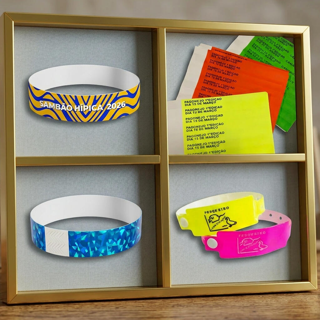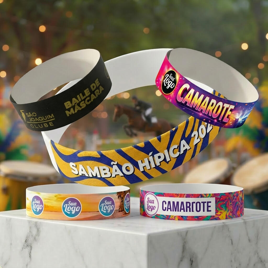 Pulseira com impressão colorida de alta qualidade ou acabamento sofisticado em dourado.