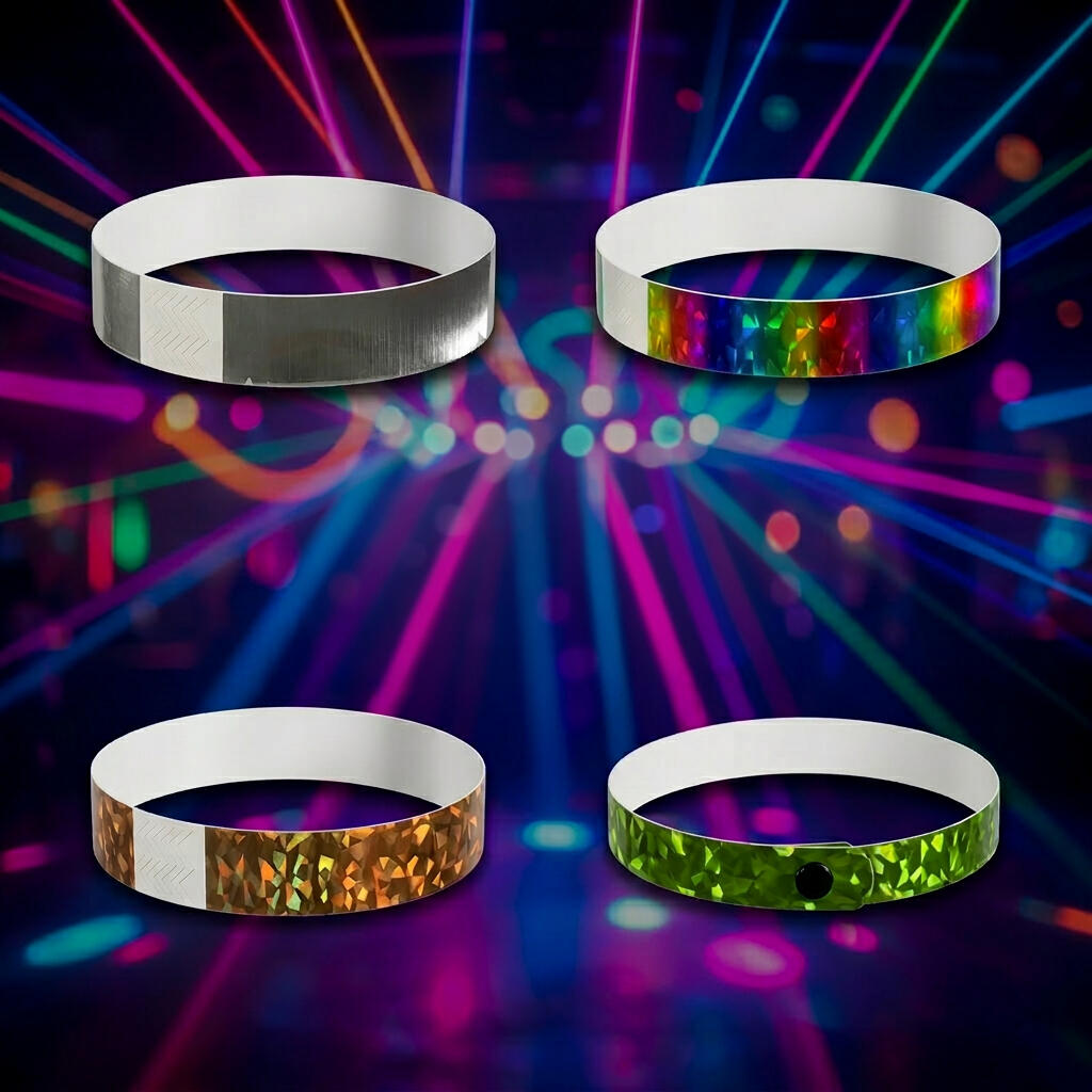 Pulseira leve e resistente com lacre adesivo inviolável.Personalizado com logotipo, texto, numeração, QR Codes e Código de Barras.